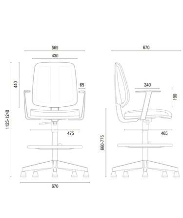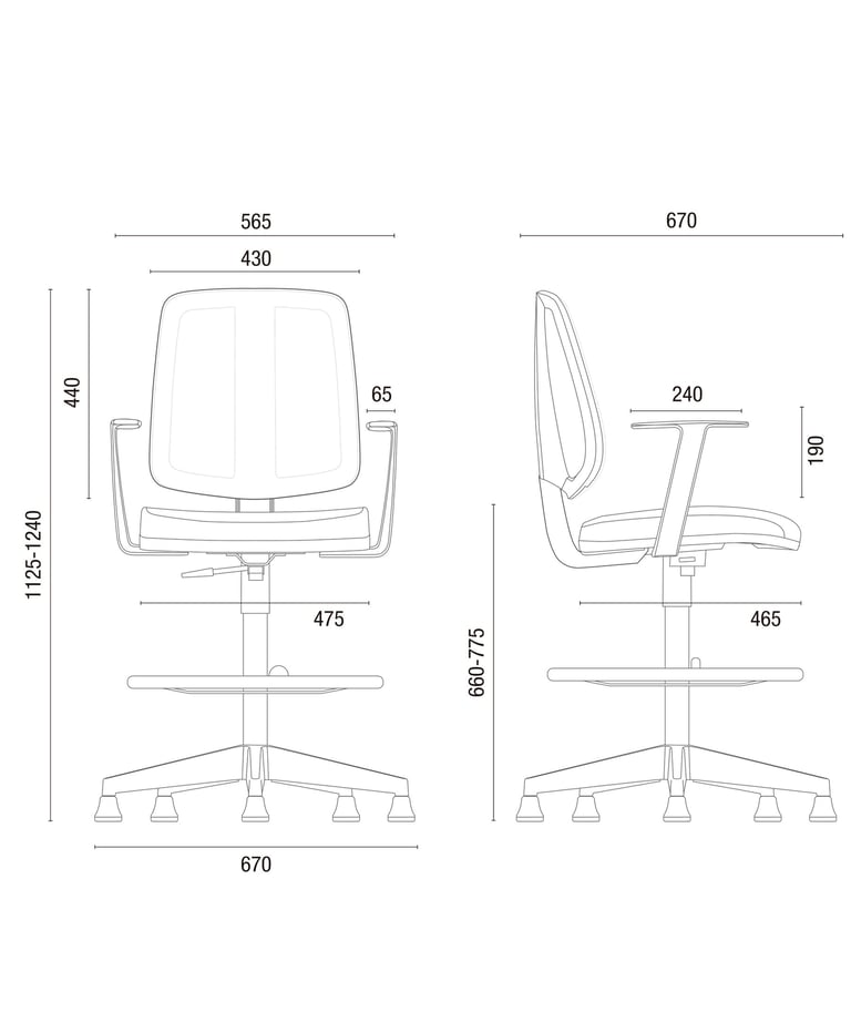 Mecanismo com Back Sistem, sistema reclinador do encosto (SRE), permitindo regulagem de altura do encosto automática através de catraca em 12 posições e inclinação do encosto em infinitas posições.