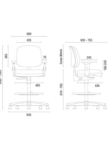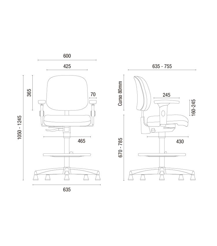 Mecanismo com Back Sistem, sistema reclinador do encosto (SRE), permitindo regulagem de altura do encosto automática através de catraca em 12 posições e inclinação do encosto em infinitas posições.