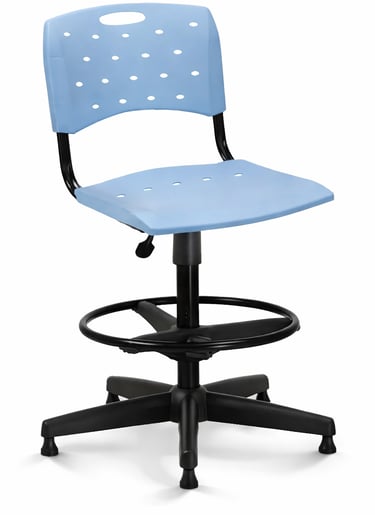 Base giratório com aranha de 5 hastes de aço carbono, coberta por polaina injetada em polipropileno copolímero na cor preta.